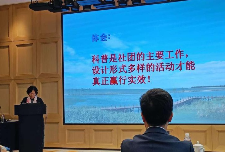 祁力言同志发言的题目是《不忘初心,保护湿地》。她的交流汇报分:一、关于湿地和湿地研究会。二、关于开展科普宣传工作,重点介绍了贡湖湾湿地生态科普馆和湿地生态研学基地的情况。三、创建中国湿地学校情况,目前我市已有13所中国湿地学校。四、大众科普促进活动,包括出《无锡湿地》会刊;办无锡湿地网站;每年参加市社科联举办的社科普及宣传周活动;进入社区、学校举办科普讲座;举办“绿水青山 生态无锡”大型摄影展;与水利局、生态环境局等单位联合开展水情教育和“碧水长流 绿美无锡”生态文明开学第一课,等等。她最后强调:科普是社团的主要工作,要设计形式多样的科普活动,才能真正赢得实效。我们要深入学习贯彻习近平总书记的“两山”理念和“生态优先、绿色发展”的重要思想,不忘初心,牢记使命,投身到湿地生态保护事业,为我市生态文明建设作出新的更大贡献!祁力言同志的介绍使与会的80名代表深受启发,赢得阵阵掌声。
